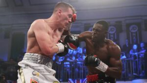 A relatively scrappy contest was punctuated by glimpses of individual one-punch power from Riakporhe, that on occasion –the disputed knockdown excepted- had Massey in some obvious difficulty. But at the same time demonstrated the 26-year old’s resilience and desire to come-forward and battle his way out of trouble.
