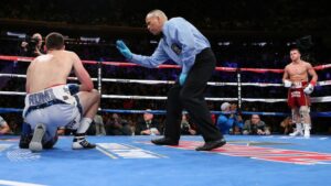 Again he recovered but Canelo was relentless and a right to the head forced Fielding to take another knee, but when he was floored again by another body shot, the official waved the fight off.