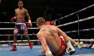 Rodriguez came out of the blocks flying – knocking Butler down twice the first round with a series of unanswered punches. Though Rodriguez didn’t get the stoppage that seemed to be a formality after the early exchanges, he did claim a shutout victory over twelve rounds to become the IBF world bantamweight champion.