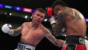 Little – whose pre-fight antics seemed to anger the usually stoic Dubois – showed true grit and determination in continuing, fighting back gamely until Referee Terry O’Connor waved the fight off 58 seconds in to the fifth round.