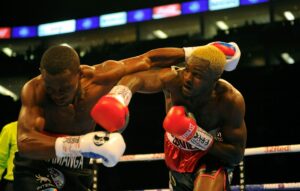 Approaching the end of the session, Davies – dubbed ‘Two Tanks’ due to his ability to punch with either hand – uncorked a monstrous right hand, stiffening Kamanga’s legs and sending him crumbling to the canvas.